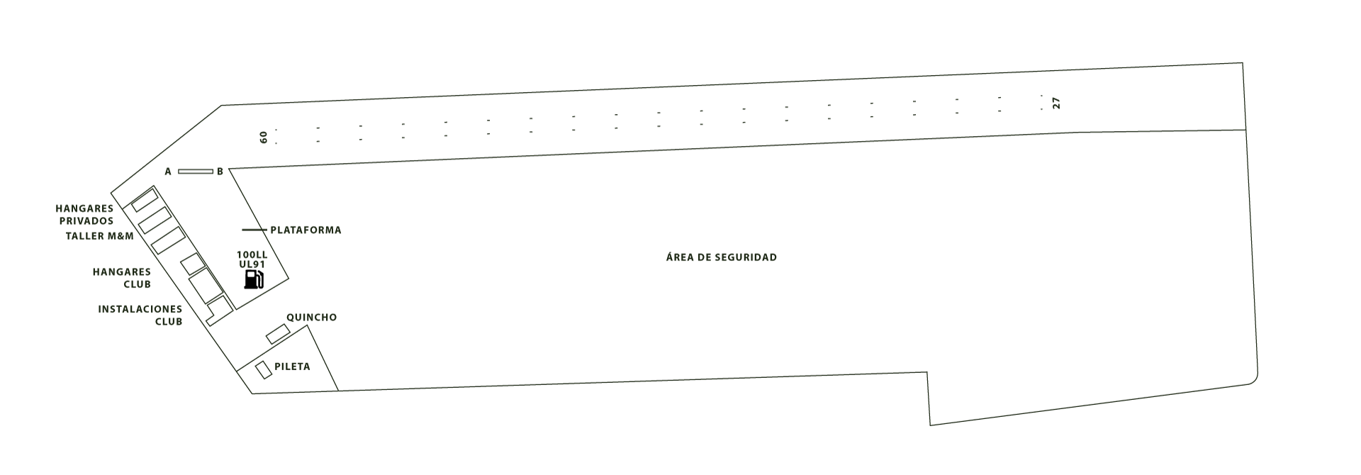 El predio se ubica en la intersección entre las Rutas 21 y A012, con desarrollo hacia el Este, siendo la orientación de la pista 09/27.